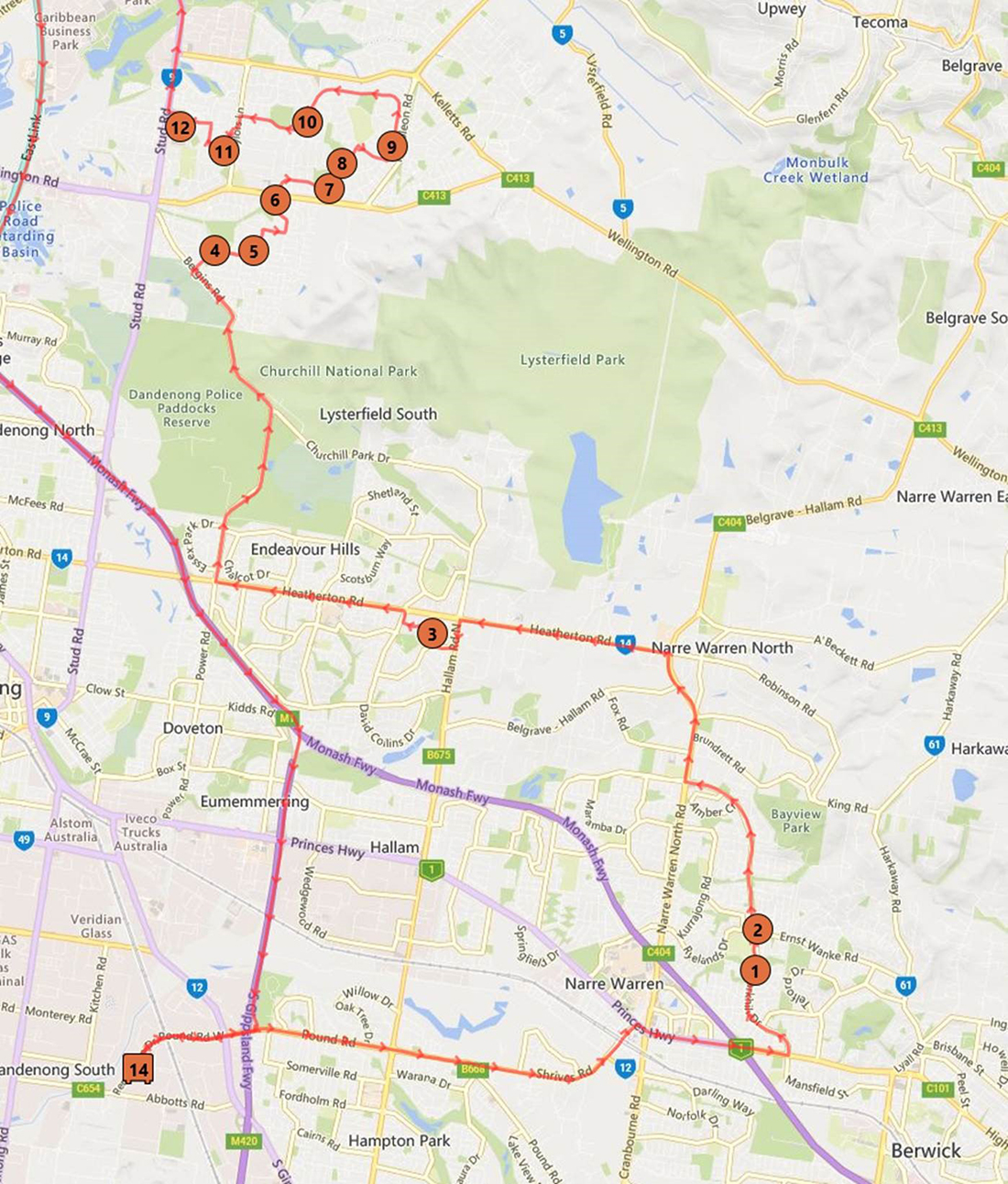 Berwick / Rowville (serviced by Crown Coaches)