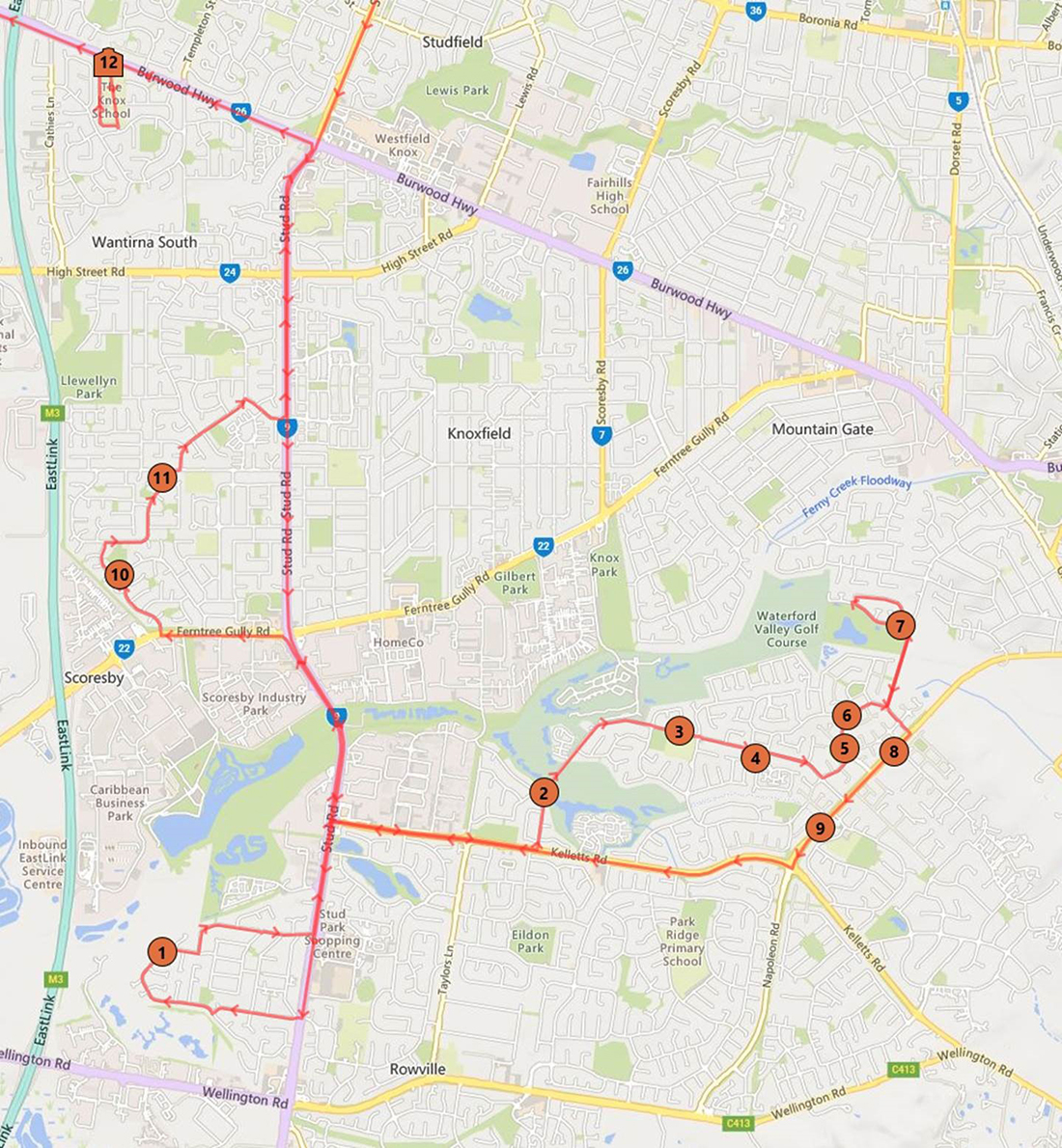 Rowville / Scoresby (serviced by Crown Coaches)